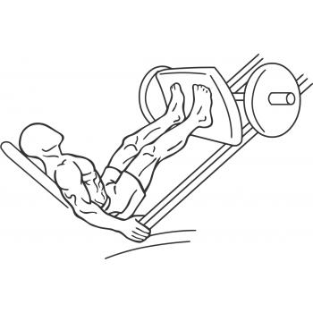 Sit on a leg press machine with your feet on the crosspiece 6 inches apart with your toes pointed slightly outward.