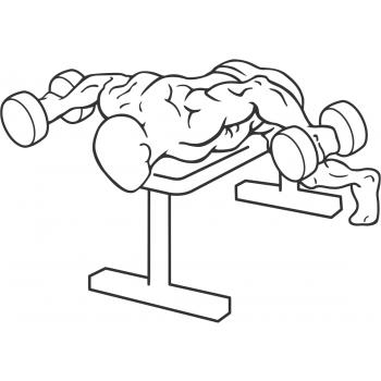 Place a dumbbell on each side of a slightly raised bench. Lie face down on the bench with your toes on the floor. Grasp a dumbbell in each hand with your palms facing down.